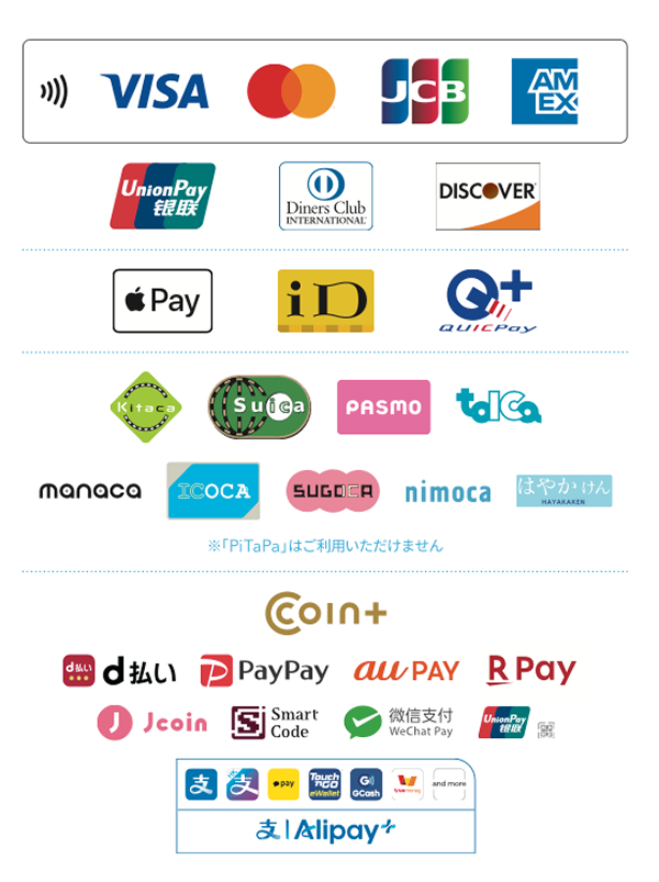 お支払いは、現金もしくは各種クレジットカード、QR決済などのキャッシュレス決済がご利用いただけます。